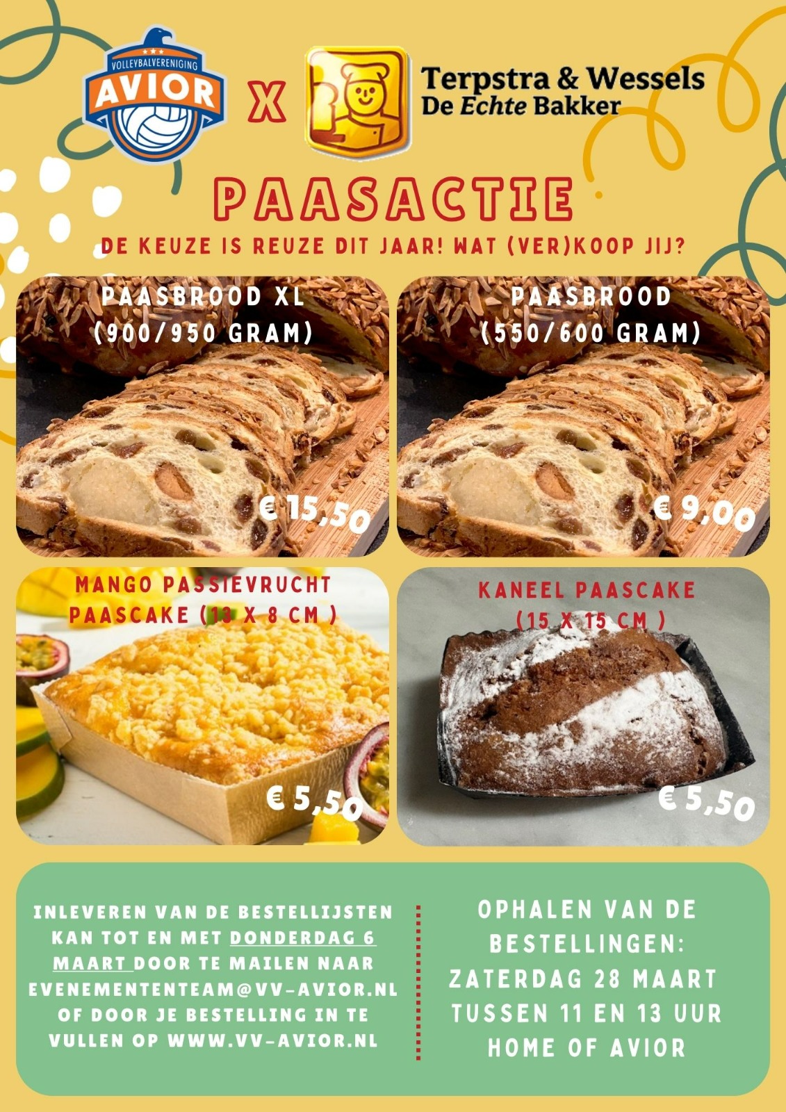 Vervolgens kun je zaterdag 28 maart je bestelling ophalen in Home of Avior tussen 11:00u en 13:00u. Daar kun je ook (PIN!) betalen.